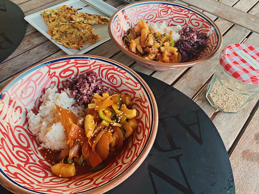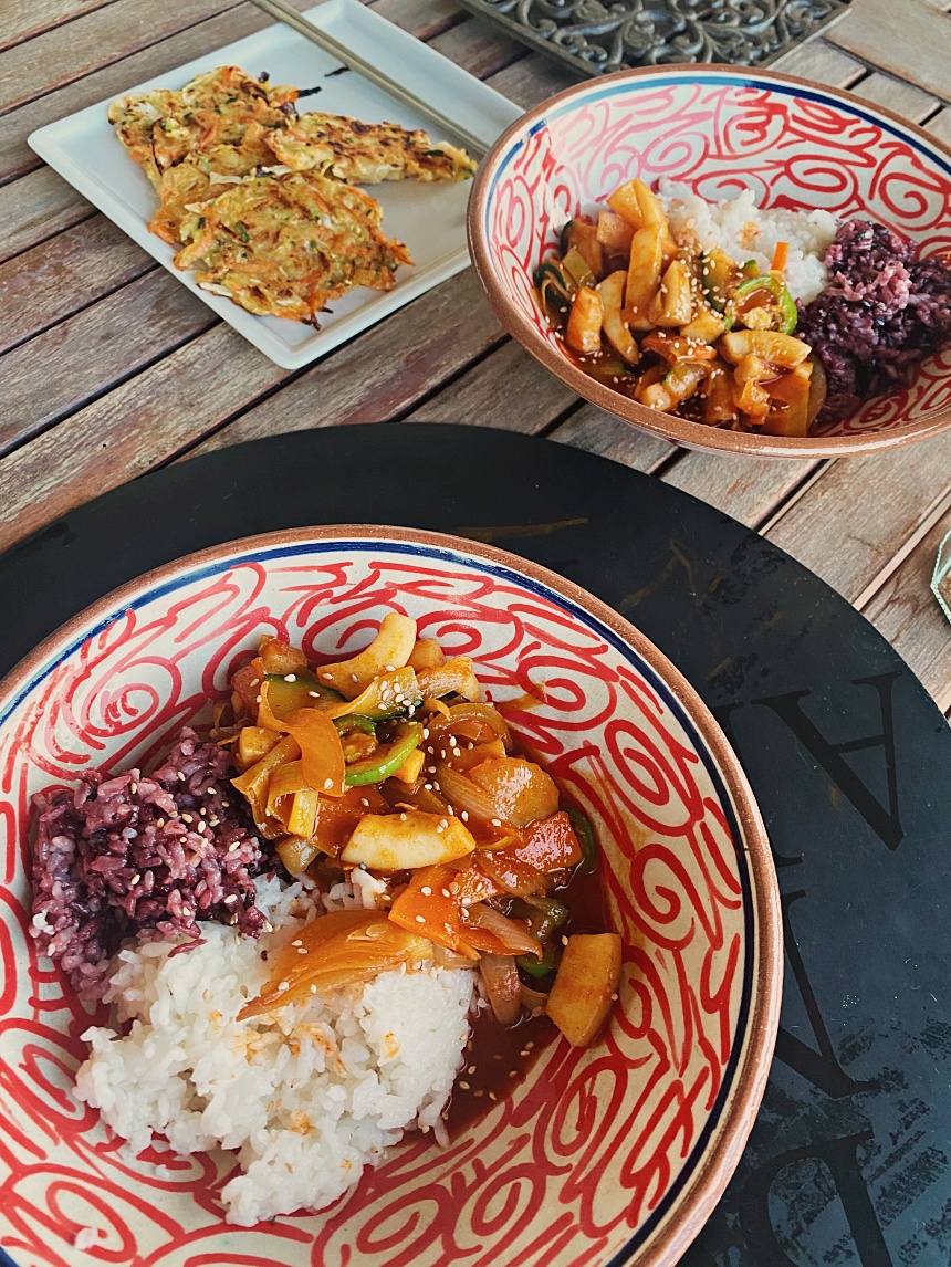 매콤한 게 먹고 싶어서 오징어 볶음.