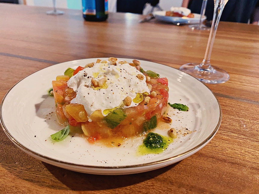 이날이 남편 생일이어서 토마토 타르타르에 스트라치아텔라(Stracciatella) 얹어 엉트레 만들었다.